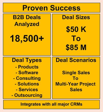 With more than 18,500 complex deals analyzed with an accuracy greater that 90% (degree of qualification, chances of winning, chances of closing by forecast Close Date, forecast accuracy) our partners have complete confidence that the deal advice and guidance they provide to their clients based on the Occulus analysis will lead to a significant increase in the win rates of their clients.