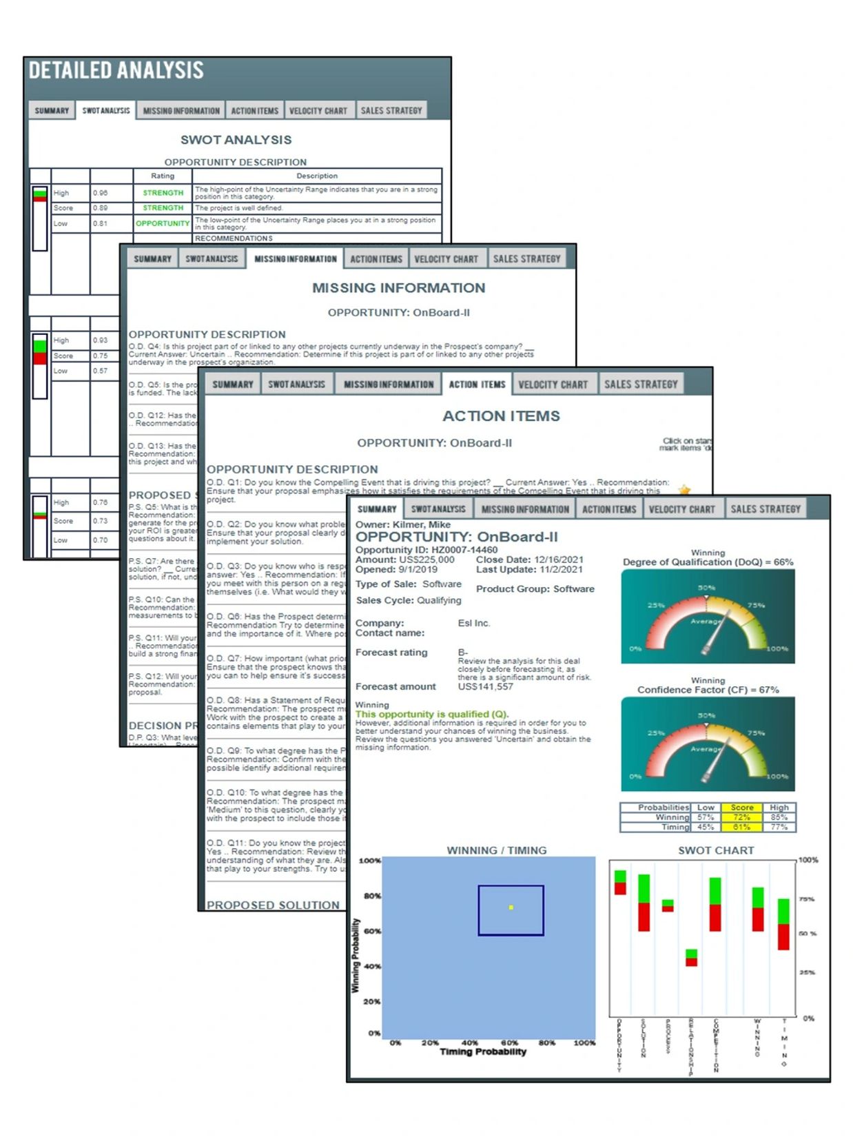 Occulus translates those numbers into actionable activities that your client’s sales reps can implement to move the deal forward to a successful close.